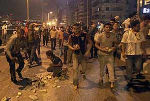 The clashes spread to nearby Tahrir Square, drawing thousands of people to the vast plaza that served as the epicenter of the protests that ousted Mubarak. On Sunday night, they battled each other with rocks and firebombs, some tearing up pavement for ammunition and others collecting stones in boxes.